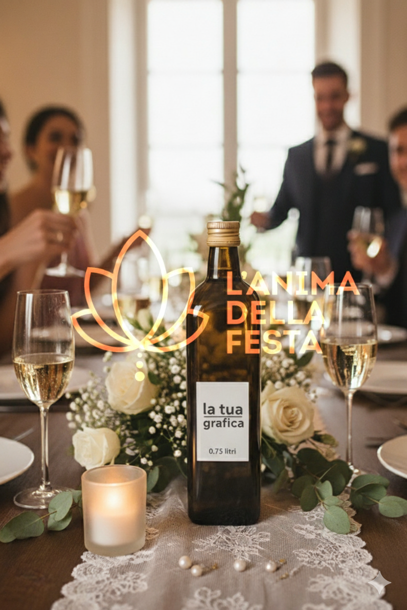 OLIO EXTRA VERGINE DI OLIVA con Etichetta personalizzata Vetro 75cl – Bomboniere, Regali e Gadget Personalizzati per Wedding e Eventi B2B